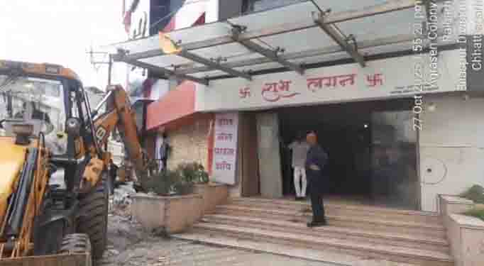 निगम आयुक्त अचानक पहुंचे आलोक सिटी माॅल, अवैध निर्माण मामले में संचालक को लगाई फटकार, दुकानों के सामने चला बुलडोजर